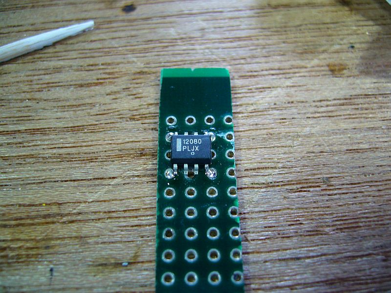 IC保持台として、「MC12080」のピン間隔に合うような(手持ちの)プリント基板が無かったので、"汎用基板"を少し細工して使った。(図3)