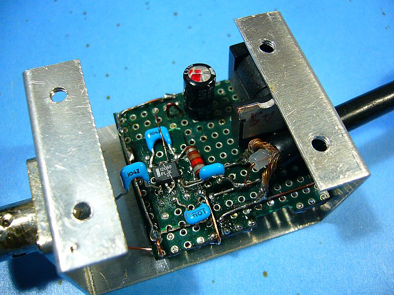 RF入力部には「BNCコネクタ角座」を、RF出力部には3C-2Vケーブル付き「BNCプラグ」(偶々、余り物だった)を使った。