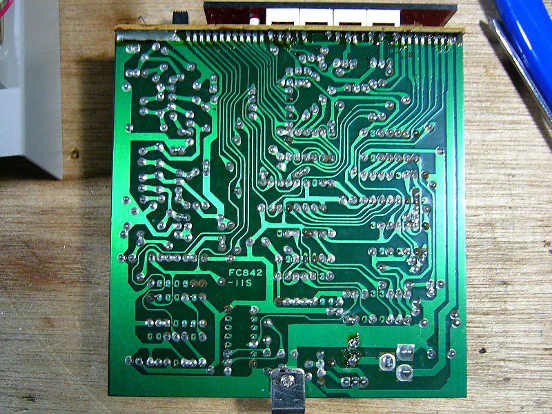 このプリント基板の裏表を眺めながら、今なら、IC 1〜2個で済んでしまいそうな回路構成だが、こうしたシンプルな配置・配線は、改造・改良には大変好都合だ!と、改造を愉しんでいる。(図6[クリック])