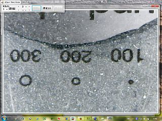 「デジタル顕微鏡」を使い易い状態にして、付属の「スケール・シート」を映してみたら、映像が逆様だ!(図5)