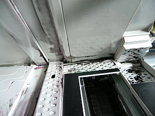 上部を上げて中を覗くと、“インク漏れ”が「インク・タンク」周辺だけでなく、そこら中に広がっていた。(図3)