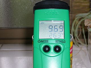 さて、このPH/ORP/温度計(左上写真<クリック>)、値の精度は、それぞれ±0.05PH,±2mV,±0.3℃ だそうですが、問題は『水』の方が、ちゃんと安定して測らせてくれるかどうかでしょうね。(見ている間、値が変化して留まらないようだと、測定はやり難い!)