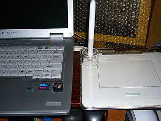 ...立ってペン操作すると、机上の場合よりも、やや負担はありそうな感じもするが、マウスやトラック・ボールよりはずっと楽な感じだ!