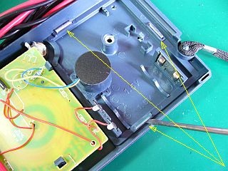 これを直すには、前の透明アクリル・カバーを外さねばならないが、調べたら、中に3箇所フックがあり、これを外せばカバーが外せそうだ!(左写真)