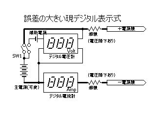 (それが可能な「デジタル電圧計」を更に付け足すか、可能な電圧・電流計を探すか、など他の選択肢もあるが、今回は、妥協的な3線式にした)