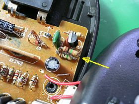 中を開けて基板を眺めてみたのですが、改造箇所は簡単には見付かりません。(左上写真<クリック>)