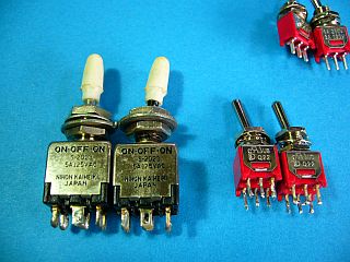 元々、2段階を考えたのは、(一番拙い方法≒部品を決めてから、仕様を決め直したのだが、)偶々、超小型の切替スイッチが1個70円と手頃で、(小粒で辛い山椒のようで、)偉く気に入ってしまって、“必ずこれを使おう!”と決めたため。(苦笑 左写真の右下の赤いSW)