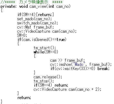 このプログラムでは、映像表示用の“窓”はひとつだけなので、“カメラの番号(cam_no)”をどのように表示するか?が問題だった。