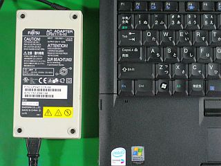 ThinkPad R60用として使う予定だった発煙ACアダプタに関しては、別に後日談があるのですが、取り敢えず、代替アダプタを用意しようと、手持ちの20V,6A(Fujitsu製 CP21115-02)のDCコードを、この(TP R60に合う)DCコードと入れ替えました。(左写真&<クリック>)