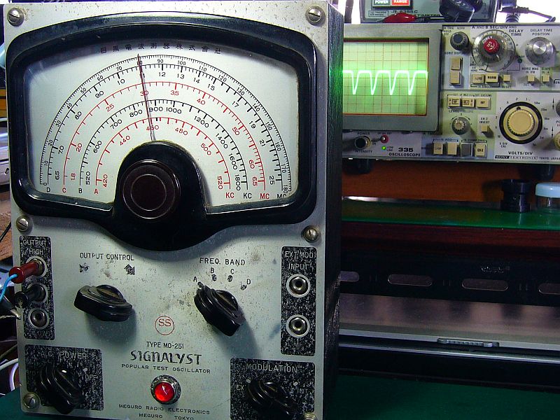 高い周波数帯域では、発振振幅が小さくなる/強度が弱くなる為か、正弦波に近くなる領域もあるのだが、まぁ、昭和中後期(?)のオシレータって、こんなものだったのだなぁ、と感慨深い。