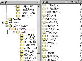 色々なソフト・ツール類でガチャガチャやっている内に、起きたようで、左図のように、DivX関係のフォルダ群やファイル群だけが、異常になってしまいました。