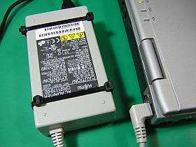 ACアダプタそのものは、以前から時々買い足していた20V,5AFujitsu製CP021110-02 今回のは\500税込み )のもの。