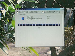 それで暫く充電した後、ACアダプタを抜いても、暫くはそのままバッテリで保持されていました。しかし、表示が無茶苦茶ですね。残り1%なのに、「残り時間の合計」は1:28時間になってます。へっ?無理も無いか!_左写真<クリック>_