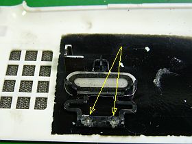 _左写真。上:蛍光管部,下:CPU放熱・空気口部_