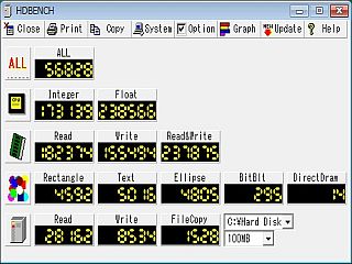 試しに、HDBENCHを走らせたら、結構良いALL値が得られた!