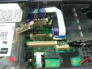 順に外すには、まずキーボードを外し、キー・カバーと液晶表示部とを一体で、外さないといけないことが分かりました。_その際のコネクタ外しが堅くて厄介!左写真_