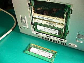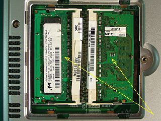 手持ちの拡張用メモリ_PC2タイプ_を、取替えたり差し替えたりしてみました。_左写真_