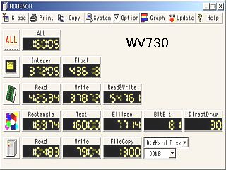 HDBENCHの結果は左図のようでしたが、これは鈍足HDDを使ったので、かなりハンディを付けて考えないといけません。_高速HDDを使うと、結構向上するから_