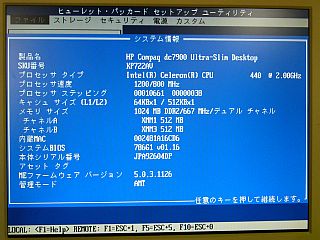 当然、「BIOS表示」も見られるようになったのだが、_勿論、_キーボードを接続していないと、この表示は見られない。