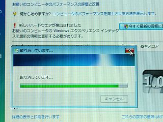 それに、あるプログラム_コンピュータのパフォーマンス評価_を走らせてみたら、十分経っても終わらない!...で、途中で嫌気が差して、中止しようとしたら、また延々と「取り消しています」だって?いい加減にせぇよ!_左上写真_