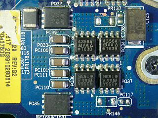 上述の出力が出ていないMOSFET群周辺を拡大撮影してみました。_左写真_