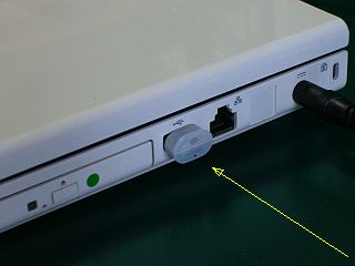 仮に小型USBタイプの無線LANを付けてネット接続をしているが、何だか勿体無い感じ。