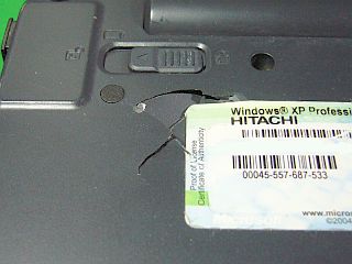 強化素材で作られている筐体が割れてるなんて、初見です!・・・ _ん?もしかして、ライセンス・シート部を切り取ろうとでもしたのかな?_