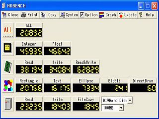 HDBENCHを走らせてみたら、CPUクロックmax1GHzなのに、まぁまぁいい線ですね。