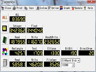 HDBENCHを走らせたら、ALL値83Kと、ずば抜けて大きい値だ。