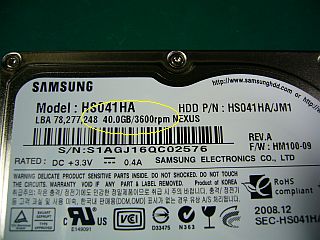 このSAMSUNG製は、40GB,3600rpmで、回転速度は今の20GB,4200rpmより劣るが、ネット上の噂では、“読み書き速度”はそれ程変わらないらしい。