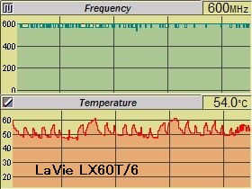 他方、LaVie LX60T/6では下右図のように、温度の振れは約10℃ほど。しかも、温度の上がり方は、_ブレーキを掛けているように、_ジワジワーっと。