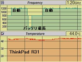 ThinkPad R31では下右図のように、温度制御が十分効いているようで、殆ど変化してない。_凄いですね!_