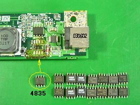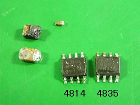 他の壊れノートPC基板から、1個は同名_Si4835_の物が探し出せて入れ替えました。_左写真<クリック>_