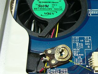 先般VY16Eジャンクで、CPUファンに抵抗を噛ませる方法で上手く行ったので、それをこのマシンでも試してみたくて。_笑_