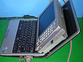 で、当苑も負けじ?と、液晶割れmini 9に“小型外部モニタ”を付けて働かせてみました。_左写真&<クリック>_