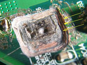 そして、放電/発熱で基板が炭化して来ると、更に燃え広がるので、始末が悪い!
