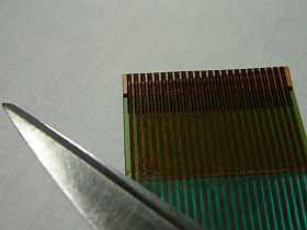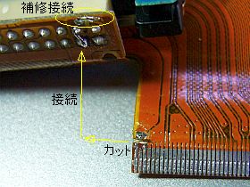 そこで、フレキ・ケーブルの先を1mmほど、鋏で切り落とす事に。_左写真_