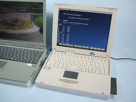 性能は低いが、DOSでプログラミングをするのに良さそうだった、比較的軽便・小型の感じのEPSON N5263のジャンクを買いました。(が、それ程小型でもなかった!左写真の右側。\980税込_