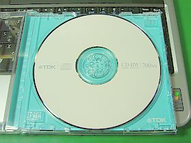 当初、一回書き込みのディスクを使ったのですが、間違った箇所の書き直しや試行のため、後は書換え可能な「CD-RWディスク」を使いました。これは、具合がいい!_左写真_