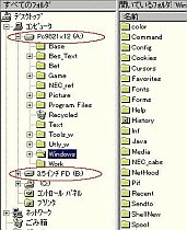 ところで、旧型のNEC機では、エクスプローラでのドライブ表示が、DOS/V機と違うのは周知の事実なのですが、始めの頃は、それに気がつかなくてうろたえたものです。