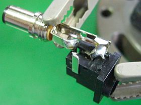 プラス、マイナス端子を、それぞれ“半田付け接続・固定”しました。_左写真_