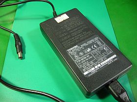 上記の部品_ジャック&プラグ_を買った後で、よもや無いだろうと思っていたのに、呆気なく純正品ACダアプタのジャンクが見付かりました。 Toshiba製15V,4A品。_左写真、\500税込_