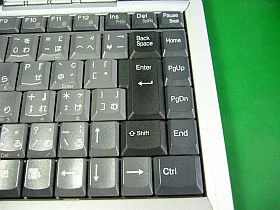 この種のキーボードは、右端に特殊キー群_Home,PgUp,PgDw,End_などが並んでいて、よく使うEnterやBackspaceキーが内側に追い遣られているので、私にはかなり使い難い。