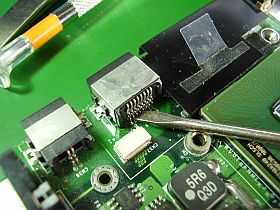 で、処置は、台座をきちんと半田付けし直してから、端子8本を押え付けながら、再度半田付け。