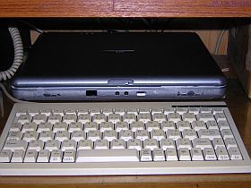 デスク・トップ代用ノートは、左写真のように、蓋を開けないままで使うので、電源スイッチは"前”か“横”に無いと困る!