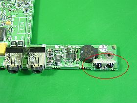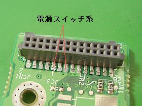 まず、電源系小基板上で、電源押しボタンの配線先を追い掛けましたが、目視では難しかったので、ボタンを押しながらショート状態になる“二つの端子”を、テスタで探しました。_出来れば、手が3本欲しかった!_