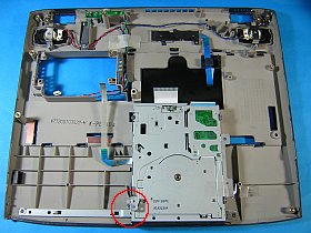 これは、薄い板に小さなビス1本で、1箇所だけで留められていたのですが、FDDがブラブラになる何ともいい加減な造りです。_左写真の赤丸印が留め部_