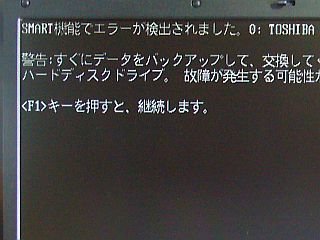 元々、このHDDはSMARTエラーが出ていて、BIOSが立ち上がる前に、毎回「継続したいならF1キーを押せ!」と出ているもので、本来なら_常識的には_廃棄処分にすべきものだ。