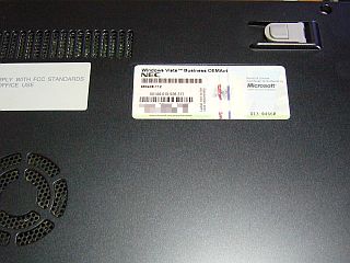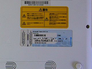 このマシンは、WinVista対応なので、筐体裏側に「プロダクト・キー」が張り付けてある。