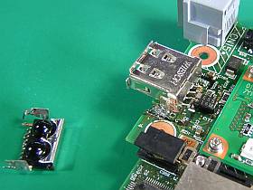 USBコネクタの置き場所として考え易いのは、「モデム端子部」か「赤外線窓部」辺りでしょうが、これまでの使用頻度の低さから、赤外線部を使う事にしました。